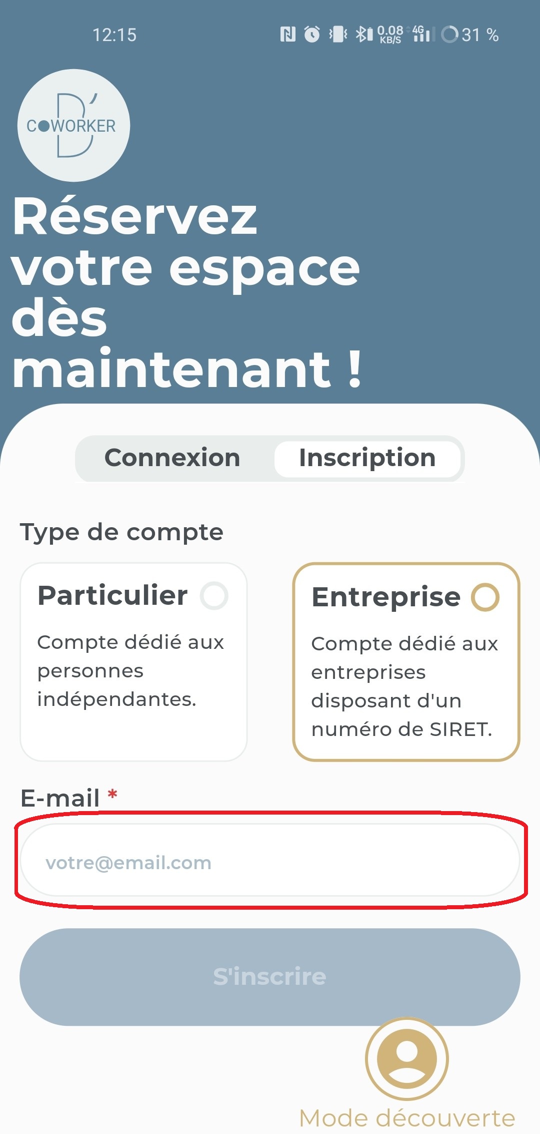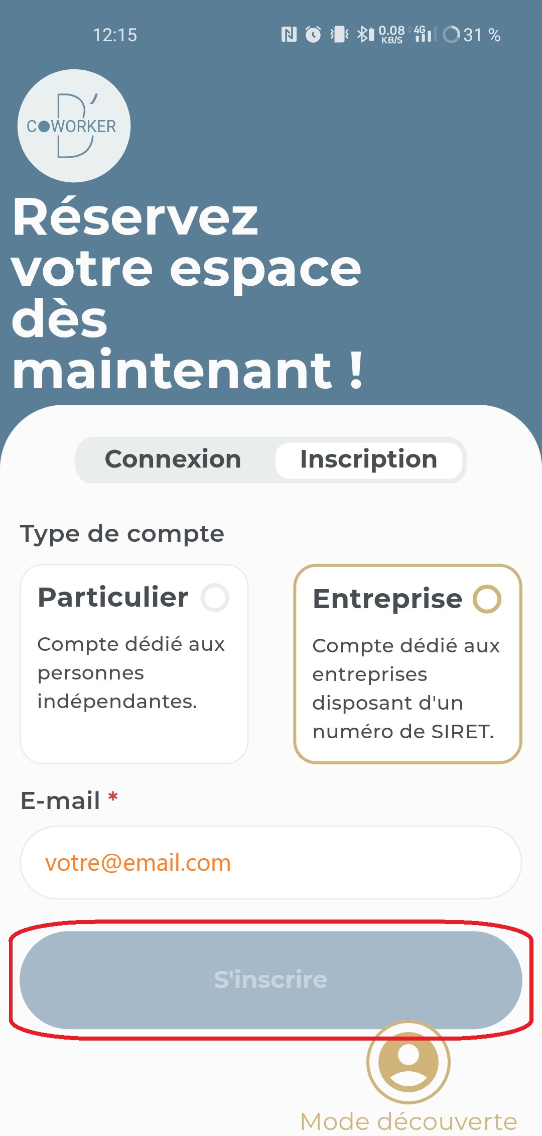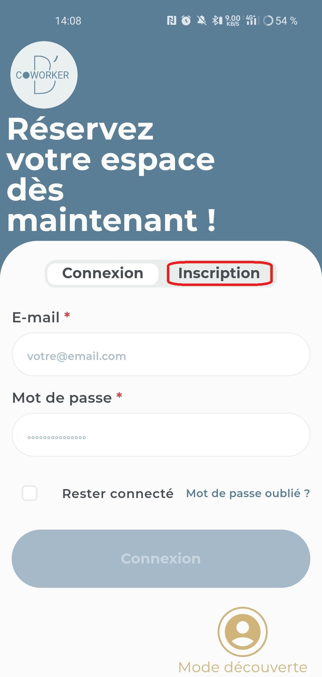 | Sur la page d'accueil cliquez sur "Inscription" |