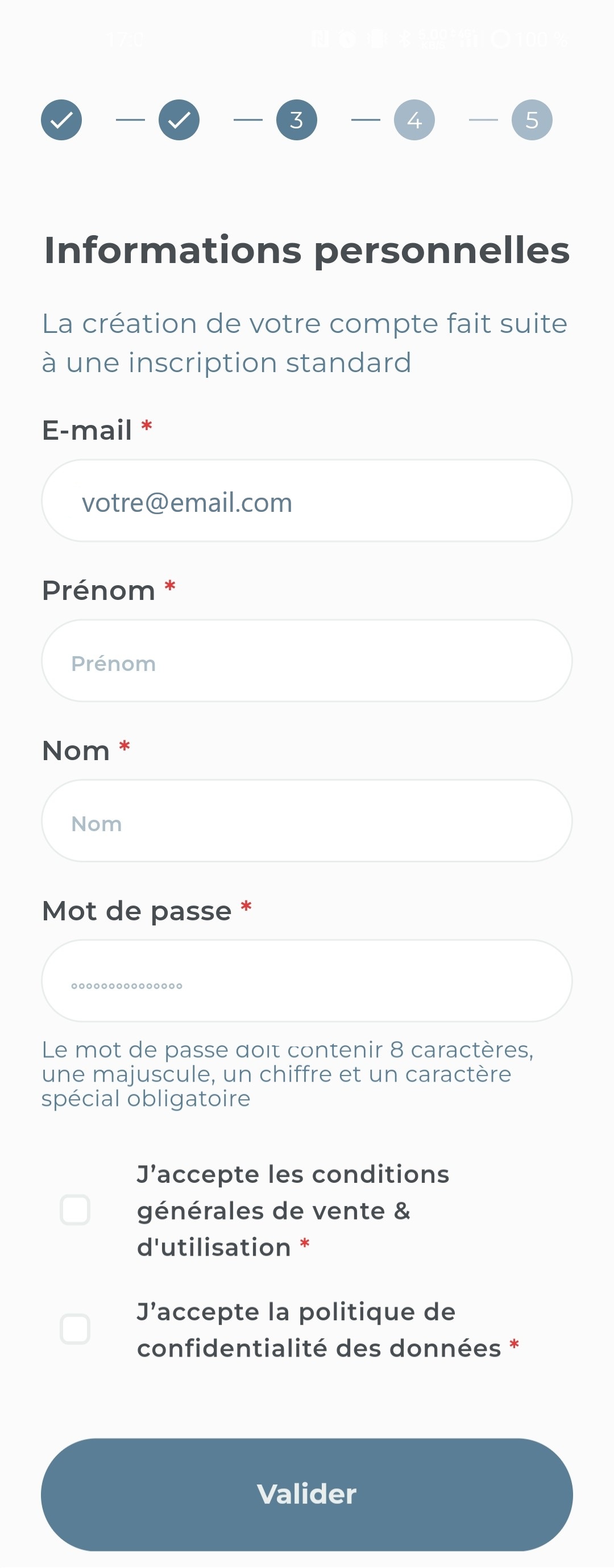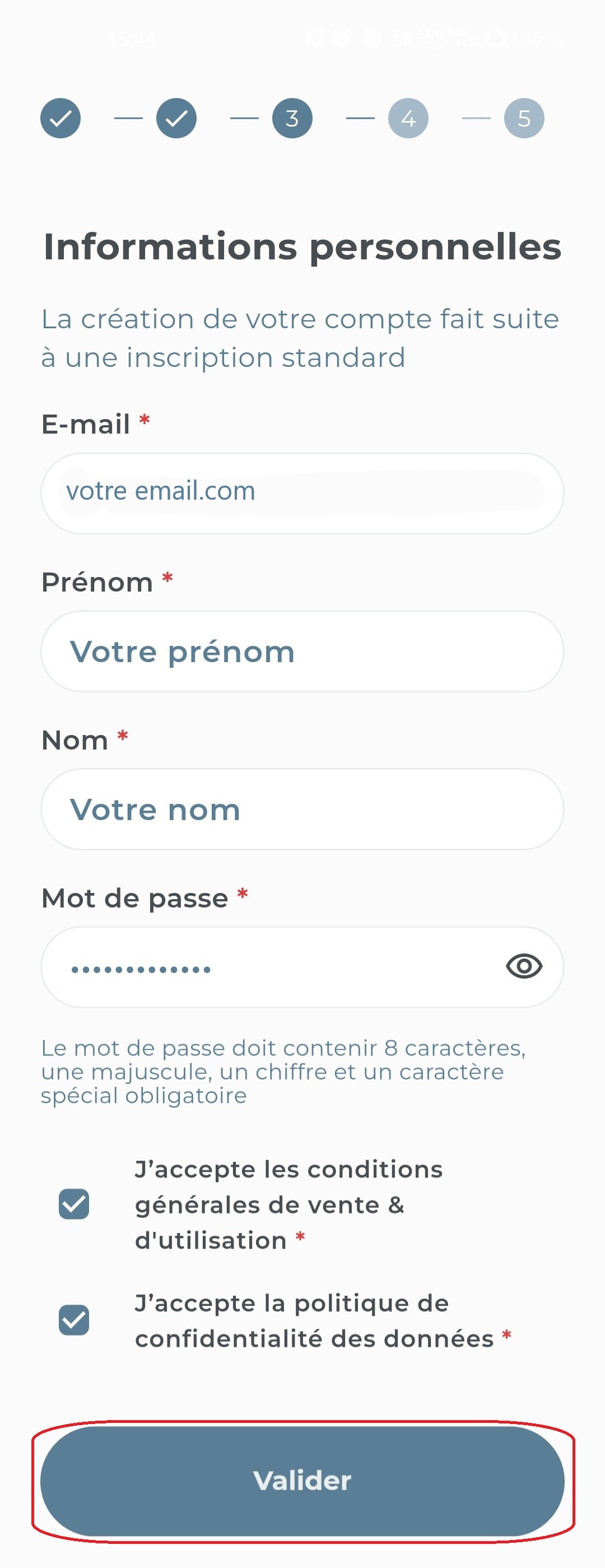 | Une fois les informations complétées et les conditions acceptées, cliquez sur le bouton "Valider". |