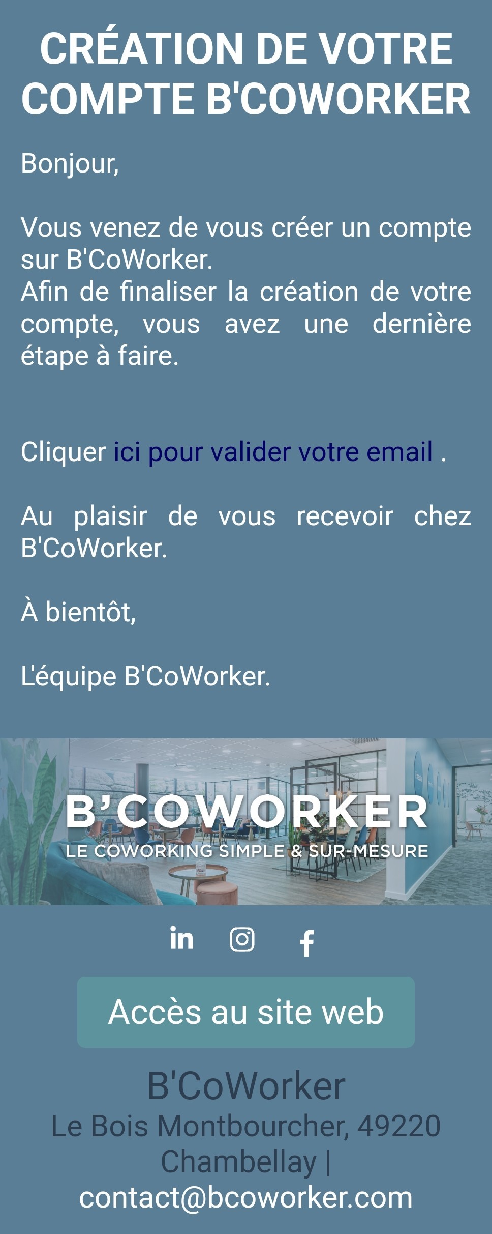 | Validez votre E-mail en cliquant sur le lien reçu dans l'email. |