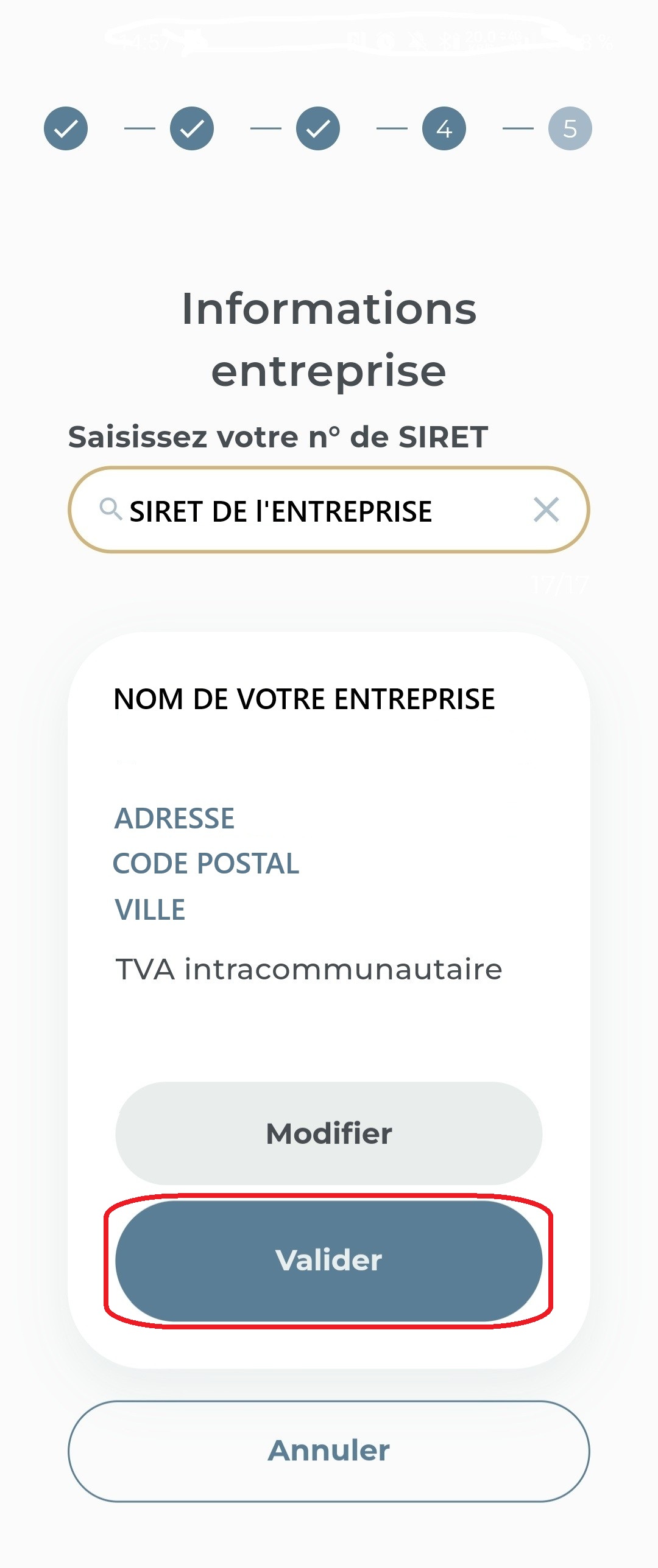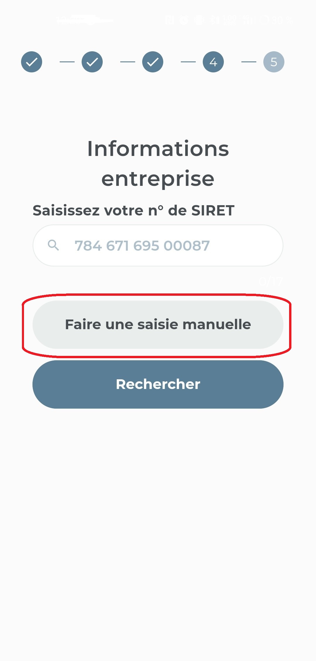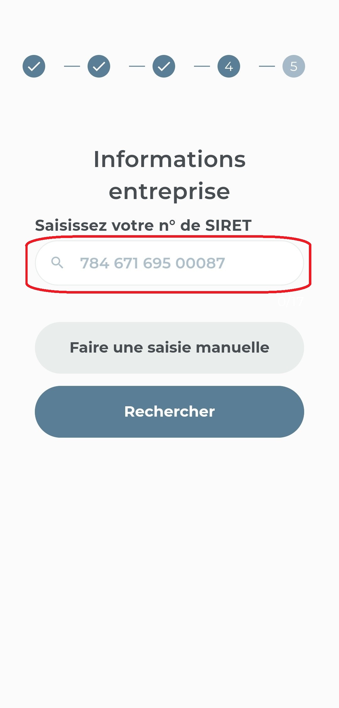 La recherche de votre entreprise via la saisie du numéro de SIRET