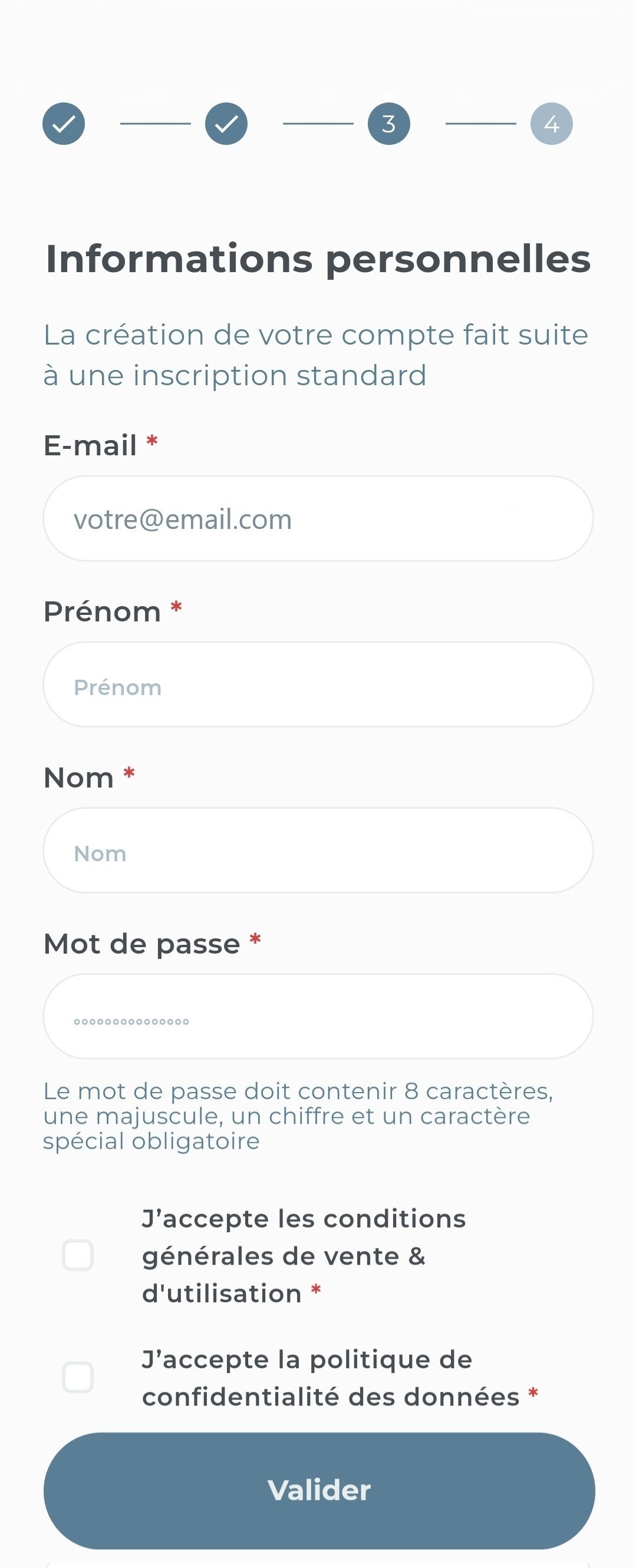 Une fois les informations complétées et les conditions acceptées, cliquez sur le bouton "Valider".