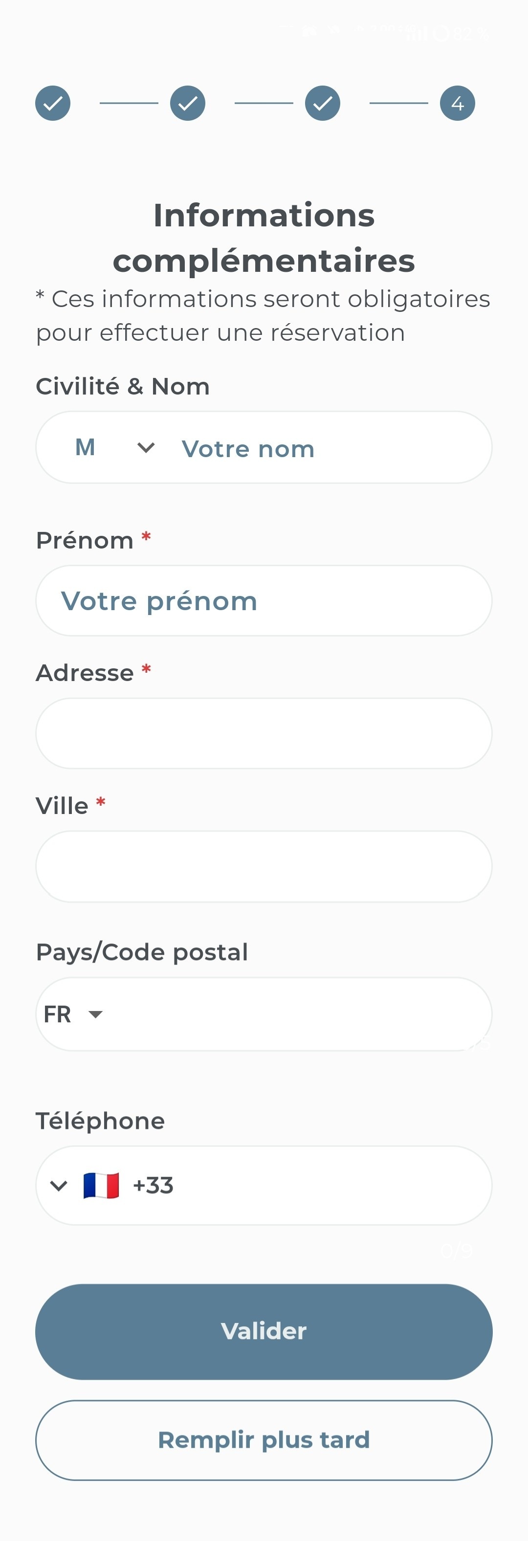Concernant les informations complémentaires vous avez la possibilité de les compléter directement ou les renseigner plus tard.